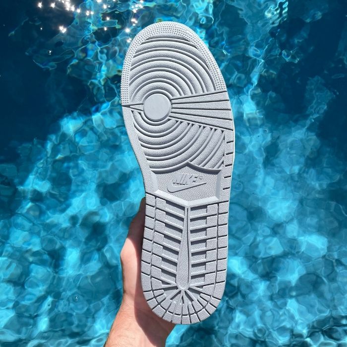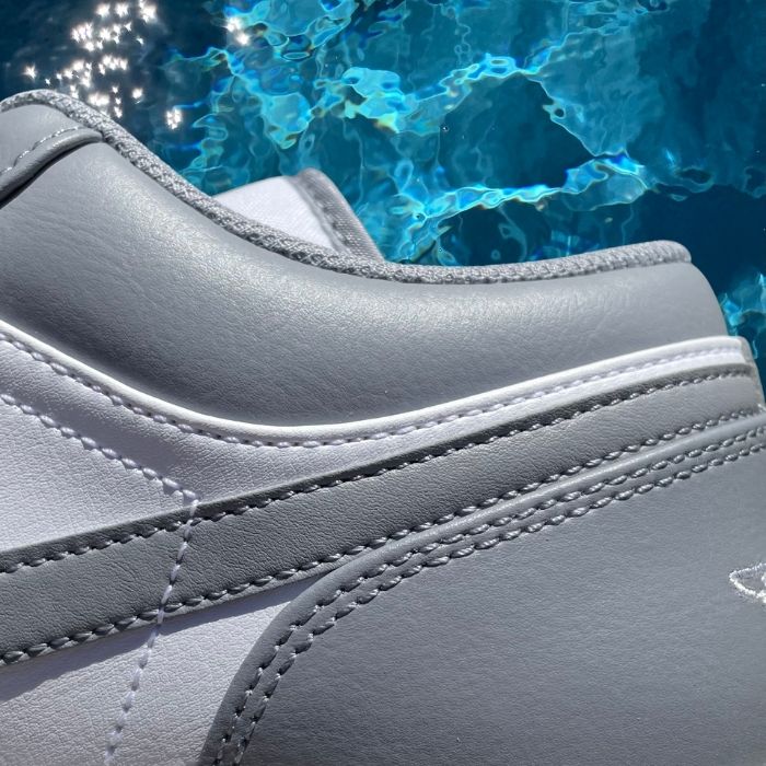 Grey overlays on a white leather upper and a vintage-washed midsole, this pair of the classic Jordan 1 Low is dream-worthy.